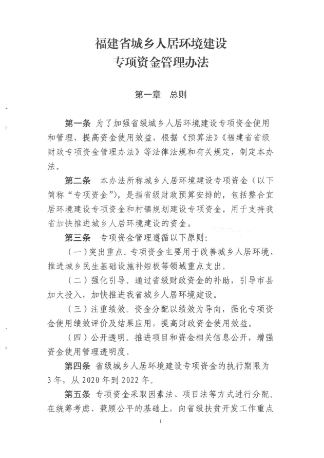 福建省財政廳福建省住房和城鄉(xiāng)建設(shè)廳關(guān)于印發(fā)《福建省城鄉(xiāng)人居環(huán)境建設(shè)專項資金管理辦法的通知》(閩財建[2020]3號)